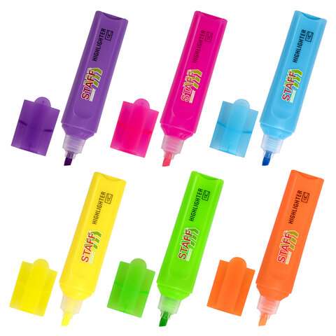 Набор текстовыделителей 6 НЕОНОВЫХ ЦВЕТОВ, STAFF "EVERYDAY HL-720", линия 1-5 мм, скошенный наконечник, 152556