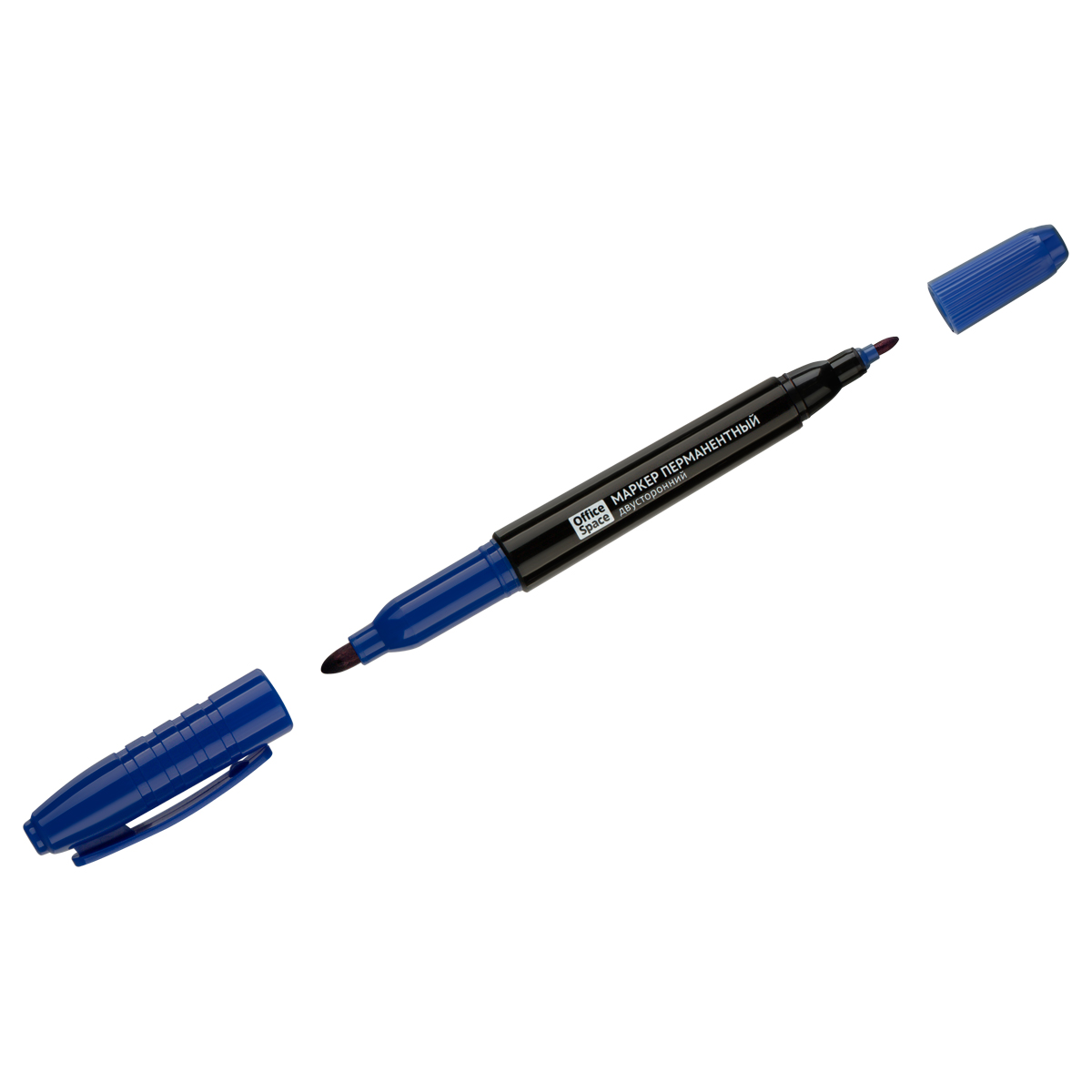 Маркер перманентный OfficeSpace двусторонний, синий, круглый наконечник, 2/4мм