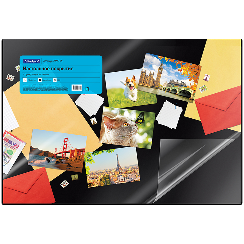 Настольное покрытие OfficeSpace 45*65см, черное, с прозрачным клапаном 239043