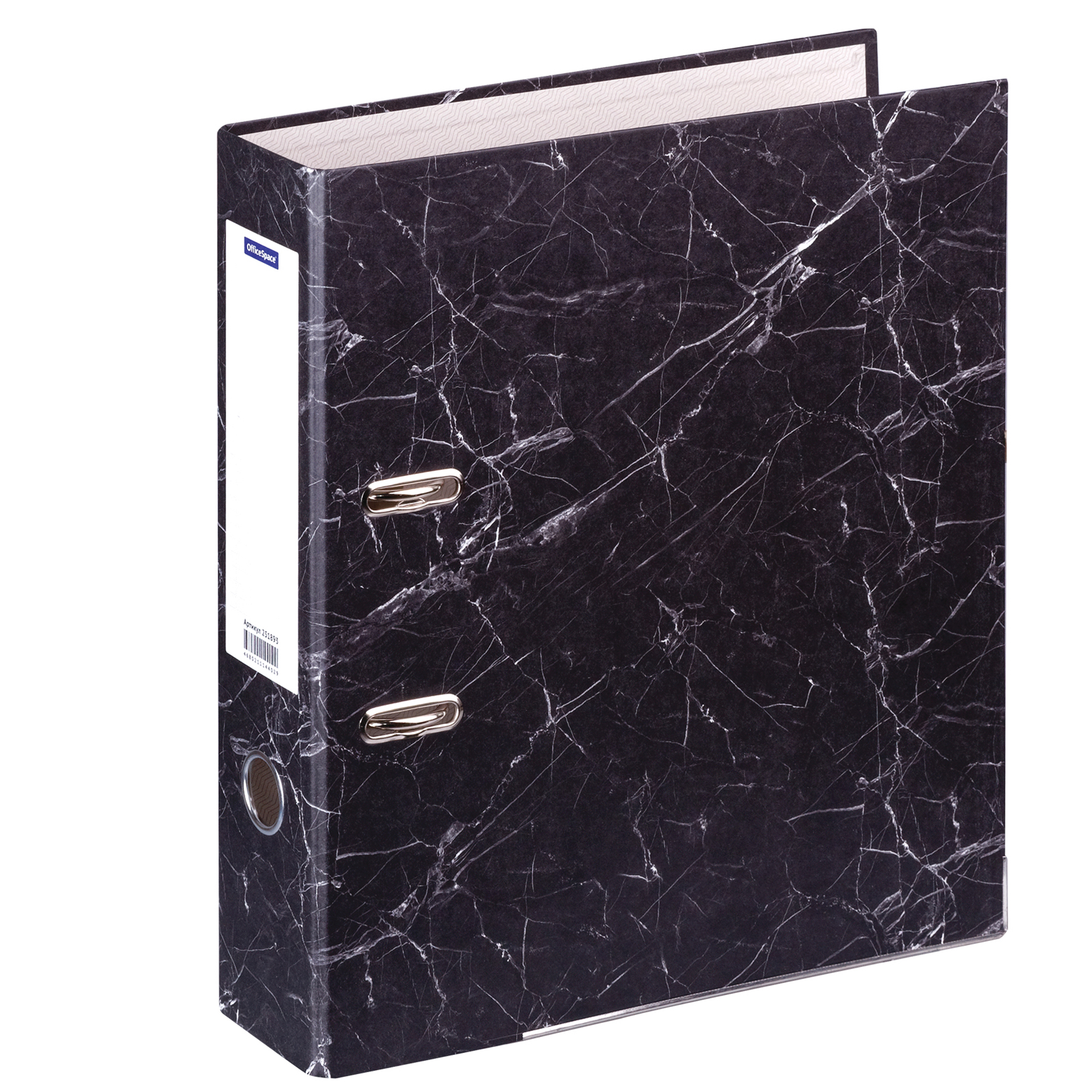 Папка-регистратор OfficeSpace, 70мм, мрамор, черная, нижний метал. кант, 251893