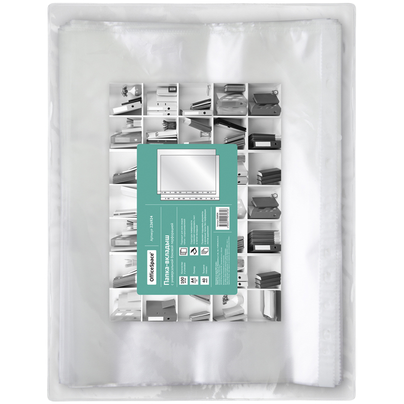Файл-вкладыш перфорированный А4, толщина 40 мкм, матовый, 100 штук в упаковке, OfficeSpace, 226924