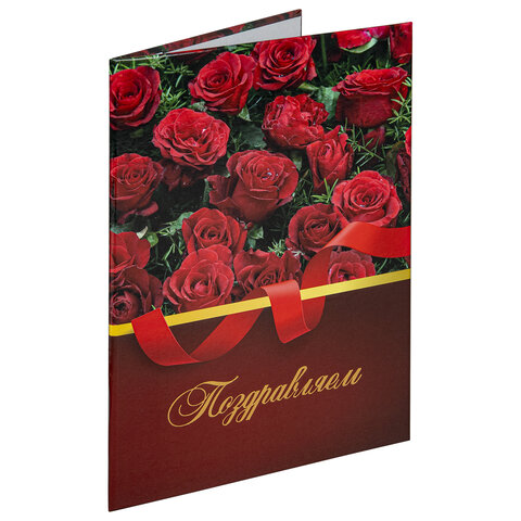 Папка адресная ламинированная "ПОЗДРАВЛЯЕМ!", А4, розы, индивидуальная упаковка, STAFF "Profit", 129585