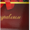 Изготовлена из прочного ламинированного картона. Папка для поздравлений формата А4 выполнена в бордово-красных тонах. На обложке - полноцветный рисунок с изображением красных роз и надпись "Поздравляем!", нанесенная с помощью золотого тиснения. Cнабжена лентой для удержания документов (ляссе).
