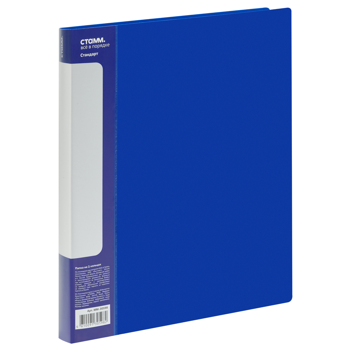 Папка на 2 кольцах СТАММ "Стандарт" А4, 40мм, 700мкм, пластик, синяя, 355284