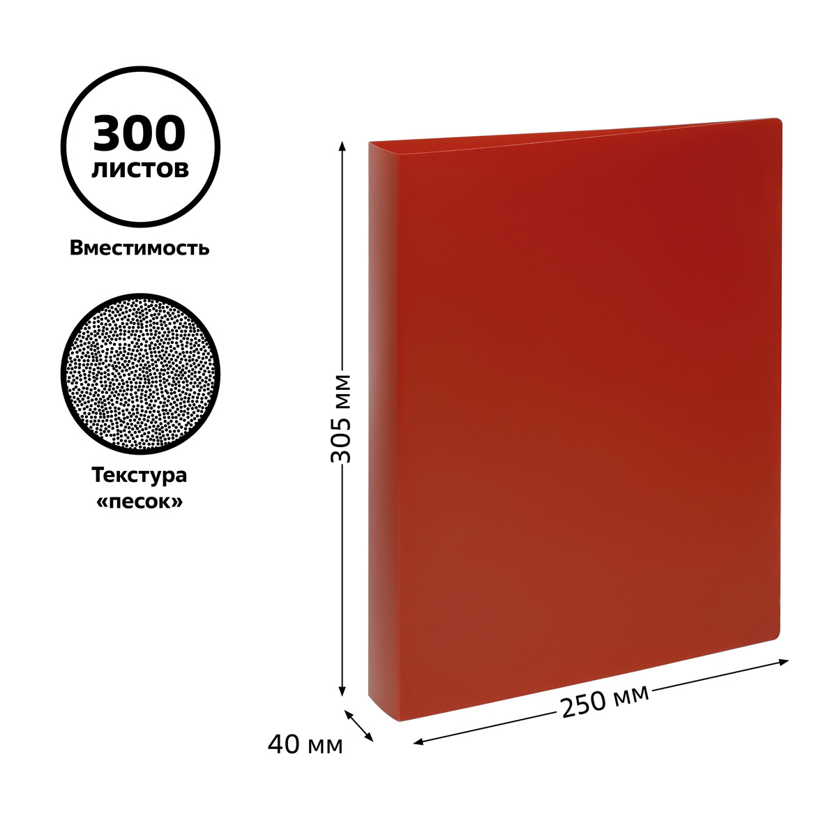 Папка на 2 кольцах «СТАММ» предназначена для хранения перфорированных документов формата А4. Цвет папки – красный. Изготовлена из качественного полипропилена плотностью 500 мкм с текстурой «песок». Размер изделия составляет 250*305 мм. Ширина корешка 40 мм позволяет вмещать в папку до 250 листов. Кольцевой механизм, состоящий из 2 колец диаметром 25 мм, надежно держит документы. Папка упакована в индивидуальный пакет. • Размер: 250*305 мм; • Толщина материала: 500 мкм; • Формат: А4; • Цвет: красный; • Вместимость в листах: до 250 листов; • Ширина корешка: 40 мм.