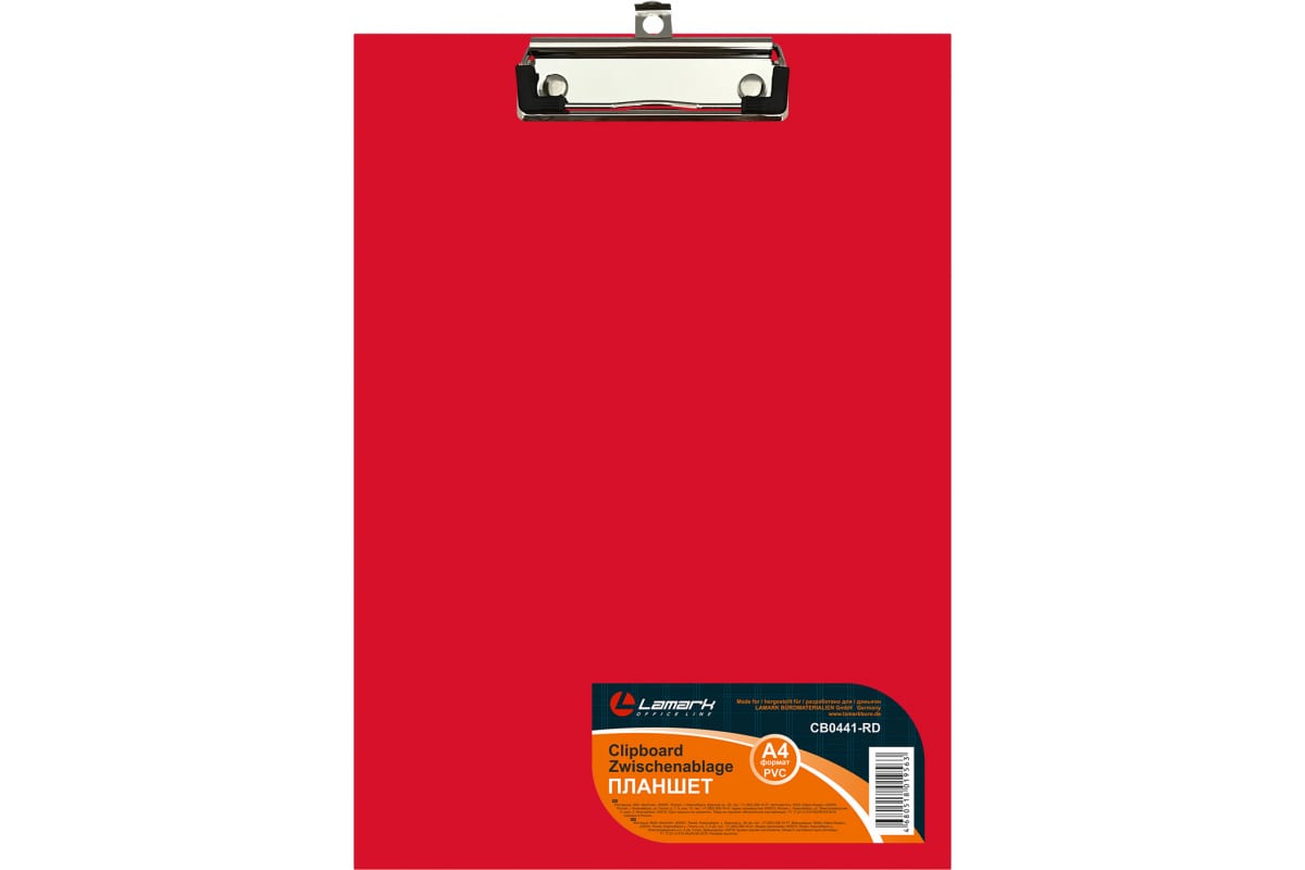 Планшет с верхним зажимом Lamark А4, PVC, красный CB0441-RD изготовлен из жесткого картона толщиной 2 мм, покрытого PVC-пленкой. Металлический верхний зажим с подвесом изготовлен из нержавеющей стали и имеет пластиковые уголки.