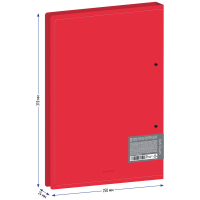 Папка на 2 кольцах Berlingo "Soft Touch", 24мм, 700мкм, красная, D-кольца, с внутр. карманом, RB4_2D982, 338215