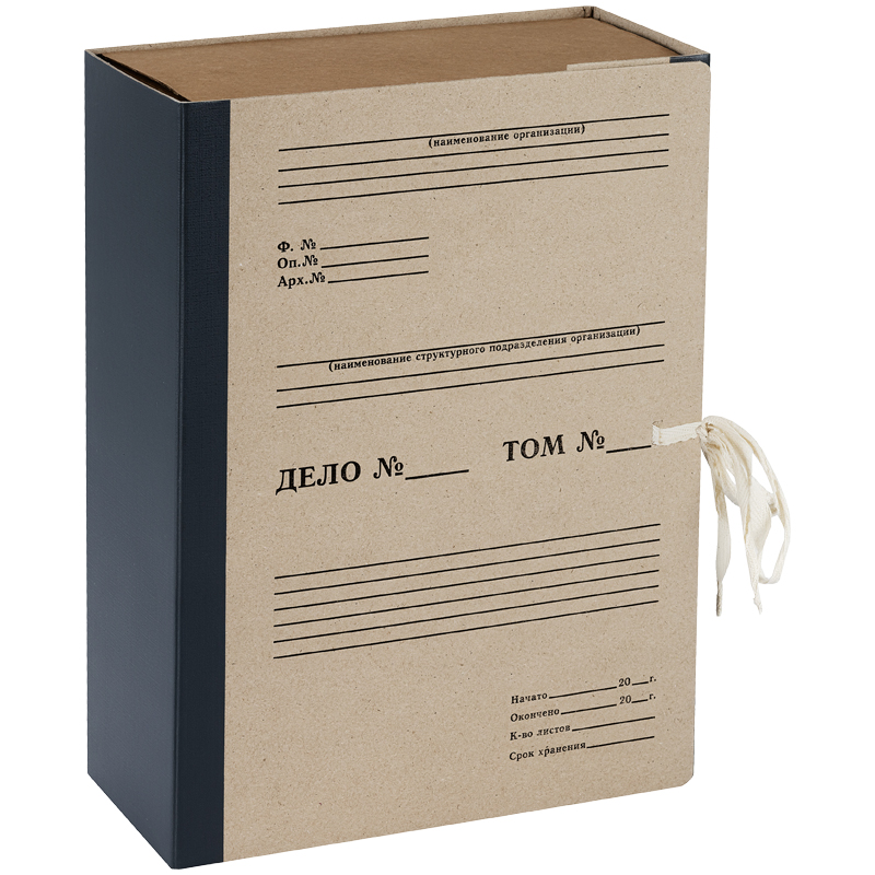 Короб архивный с завязками OfficeSpace А4+ размером 330*240*120 мм предназначен для хранения большого объема документации. Изготовлен из прочного переплётного картона с печатью на обложке «ДЕЛО». В закрытом виде короб фиксируется на 2 хлопчатобумажные завязки. Внутренние клапаны выполнены из переплётного картона. Ширина корешка 120 мм. Размещение документов: горизонтальное/вертикальное. Поставляется в разобранном виде.