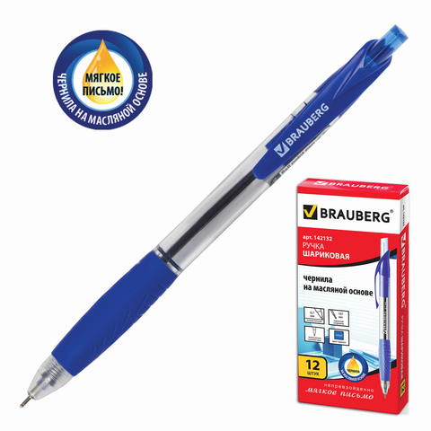 Ручка шариковая масляная автоматическая с грипом BRAUBERG "Jet", СИНЯЯ, узел 0,7 мм, линия письма 0,35 мм, 142132