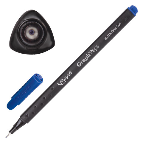 Ручка капиллярная MAPED (Франция) "Graph' Peps", трехгранная, корпус черный, линия 0,4 мм, синяя 749120 141710