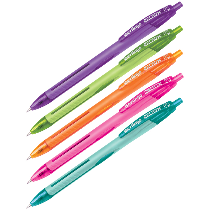 Шариковая автоматическая ручка Berlingo Hyper X с удобным клипом станет ярким атрибутом отличного настроения. Длина письма - 1200 метров. Диаметр пишущего узла составляет 0,7 мм, благодаря чему ручка подходит для любого стиля письма. Упакованы в пластиковый стакан по 40 штук. Кнопочная подача стержня обеспечивает дополнительное удобство при работе с ручкой. Корпус изготовлен по технологии двойного литья, что значительно повышает срок её службы. Прорезиненное покрытие препятствует скольжению пальцев при письме. Уникальная запатентованная технология Smart Ink обеспечивает лёгкое письмо благодаря чернилам пониженной вязкости, специальной конструкции и особым материалам пишущего узла. Такими чернилами можно писать без дополнительных усилий даже при лёгком касании бумаги.