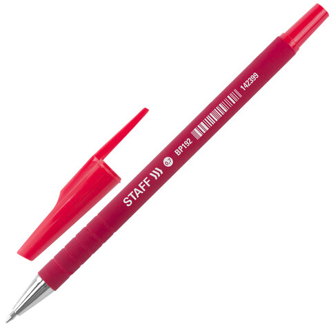 Ручка шариковая STAFF, корпус прорезиненный красный, узел 0,35 мм, линия письма 0,35 мм, красная, 142399