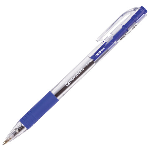 Ручка шариковая масляная автоматическая с грипом BRAUBERG "Click", СИНЯЯ, узел 1 мм, линия письма 0,5 мм, 142702
