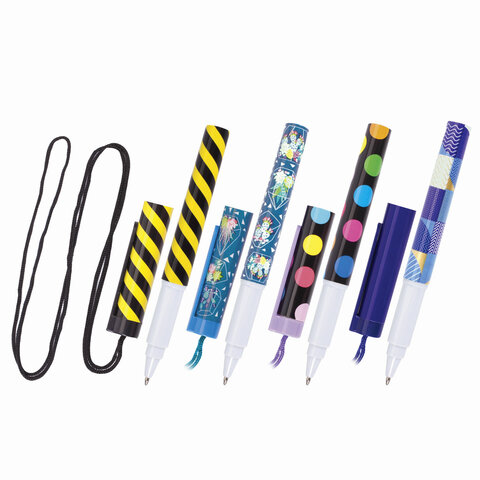 Ручка шариковая на шнурке BRAUBERG/ПИФАГОР "Funny Motions", СИНЯЯ, корпус ассорти, линия письма 0,35 мм, 141466