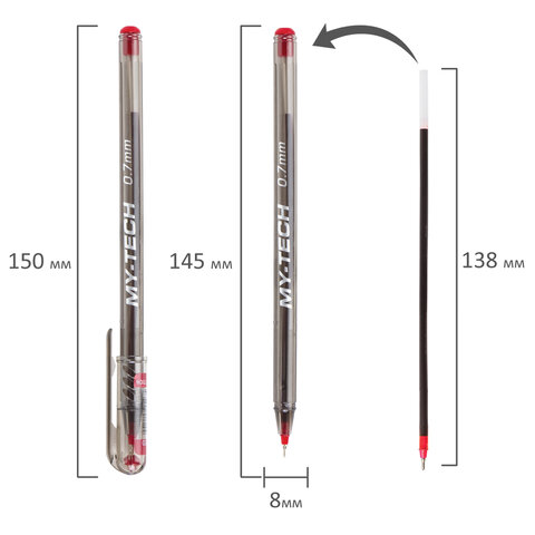 Ручка шариковая масляная PENSAN "My-Tech", КРАСНАЯ, игольчатый узел 0,7 мм, линия письма 0,35 мм, 2240/25 143384