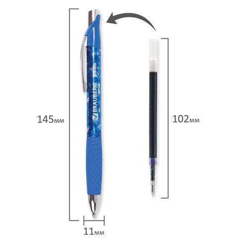 Ручка гелевая автоматическая с грипом BRAUBERG "Jet Gel", СИНЯЯ, печать, узел 0,6 мм, линия письма 0,4 мм, 142690