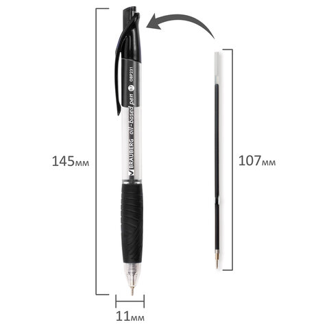 Шариковая масляная автоматическая ручка с грипом BRAUBERG "Jet" - надежный и долговечный предмет для ежедневного использования. Имеет круглый корпус с печатью и резиновый грип, который обеспечивает комфортное письмо. Сменный стержень длиной 107 мм с игольчатым наконечником позволит использовать ручку максимально долго. Диаметр пишущего узла, равный 0,7 мм, создает тонкую линию письма, равную 0,35 мм. Специальные масляные чернила черного цвета ультрапониженной вязкости и надежный пишущий узел обеспечивают непревзойденно мягкое и комфортное письмо.