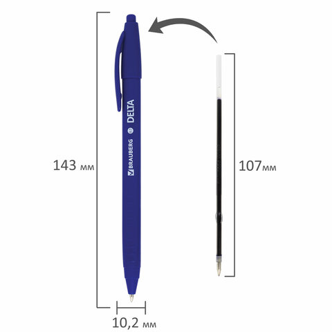 Ручка шариковая масляная автоматическая BRAUBERG "Delta", СИНЯЯ, soft-touch, 0,7 мм, линия 0,5 мм, OBPR365, 143339