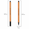 Ручка капиллярная имеет шестигранную форму корпуса оранжевого цвета. Благодаря такой форме корпуса изделие удобно располагается в руке. Супертонкий износостойкий металлический наконечник 0,4 мм идеально подходит для создания точных и аккуратных линий. Цвет колпачка соответствует цвету черных чернил.