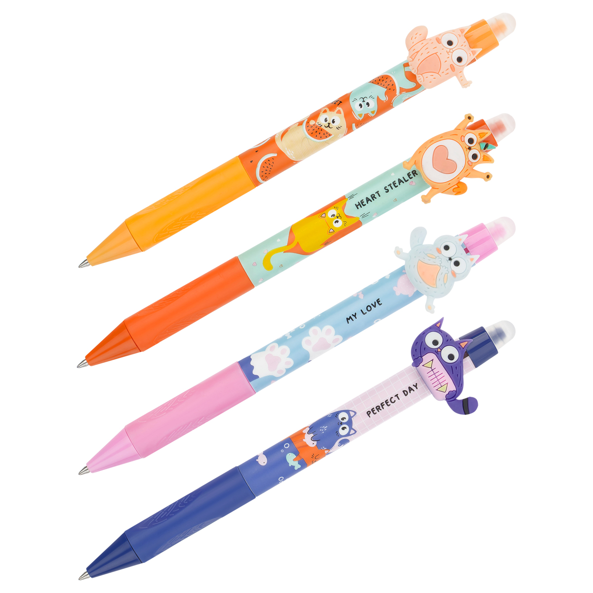 Ручка гелевая стираемая автоматическая MESHU "Cool cats" синяя, 0,5мм, корпус ассорти, с топпером