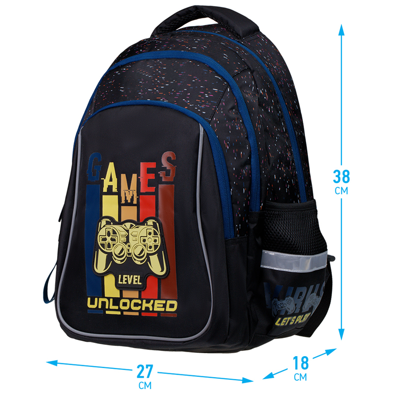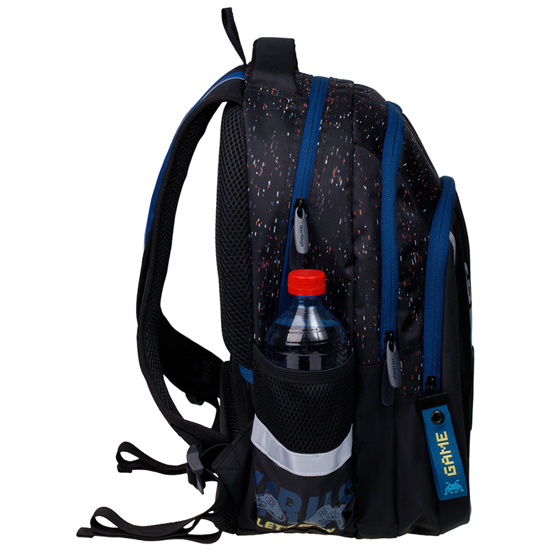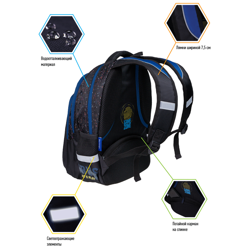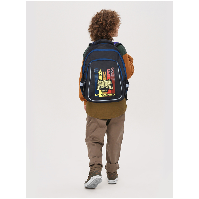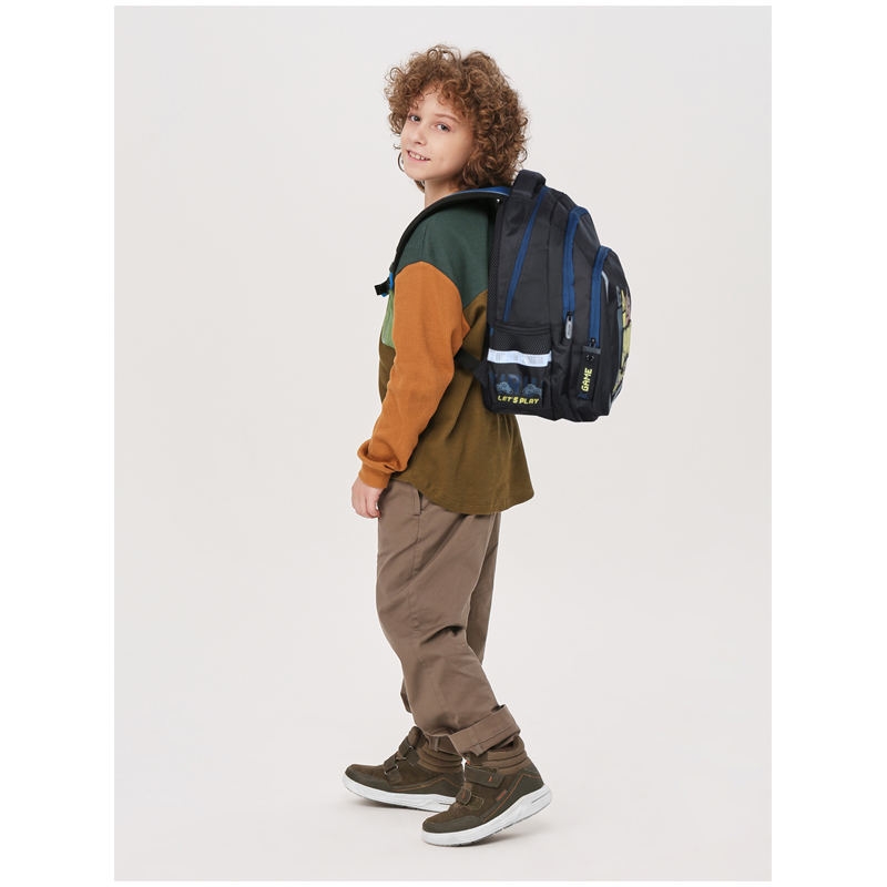 Рюкзак изготовлен из прочного нейлона, благодаря чему изделия обладают повышенной износостойкостью. В рюкзаке предусмотрены 3 отделения, 2 боковых кармана, скрытый карман на спинке. Удобное хранение учебных принадлежностей обеспечивают внутренний органайзер, отделение для учебных пособий и карман на молнии. Жесткая эргономичная вентилируемая спинка, широкие регулируемые лямки обеспечивают равномерное распределение нагрузки на позвоночник, а усиленное дно, плотная ручка и петля для подвешивания делают рюкзак максимально удобным. Световозвращающие элементы помогают обеспечить безопасность ребенка в темное время суток.
