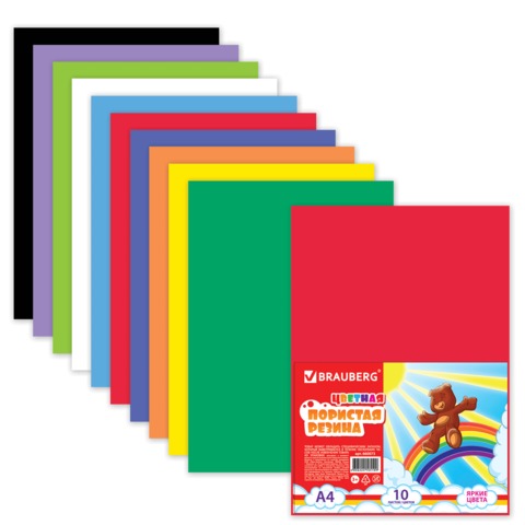 Цветная пористая резина (пенка в листах) д/творч.А4 210*297мм BRAUBERG 10л. 10цв, радужная, 660073