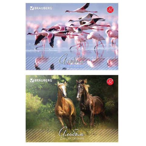 Альбом для рисования, 32 л., BRAUBERG, обложка мелованный картон, "Живая природа", 2 вида, 103683