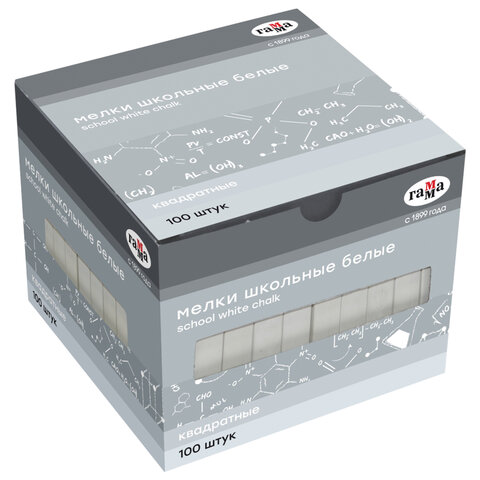 Мел белый ГАММА НАБОР 100 шт., мягкий, квадратный, 2308193, 229658