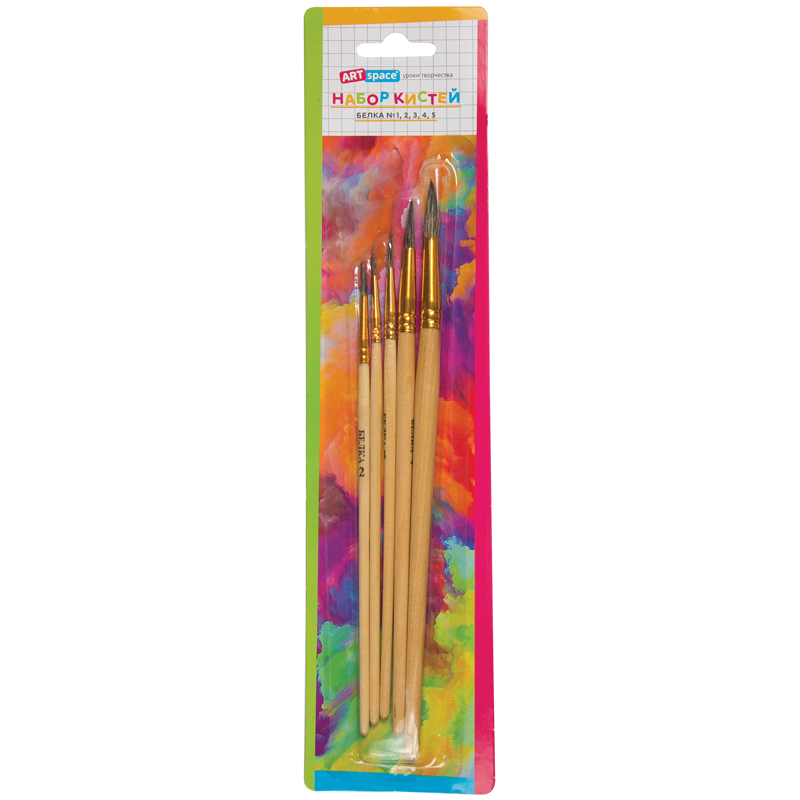 Набор кистей ArtSpace, 5шт., белка, круглые, № 1, 2, 3, 4, 5, блистер, 186710