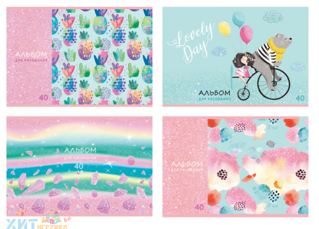 В упаковке ассорти милых дизайнов альбомов, которые понравятся девочкам. Альбом отлично подойдёт для рисования различными типами красок, фломастерами, цветными и чернографитными карандашами, гелевыми ручками. Не имеет возрастных ограничений.