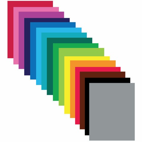 Набор мелованной (глянцевой) двусторонней цветной бумаги плотностью 55 г/м2 включает 16 листов формата А4 (200х280 мм) в 16-ти разнообразных и насыщенных однородных цветах. Листы скреплены скобами, легко режутся и сгибаются.