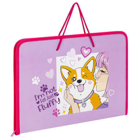 Папка для труда ПИФАГОР А4 "Fluffy akita" с ручками предназначена для хранения и переноски тетрадей, альбома для рисования, цветной бумаги, картона и прочих бумаг.