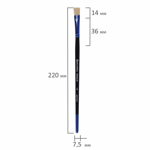 Кисть щетина, плоская № 10, BRAUBERG PREMIUM, 200997