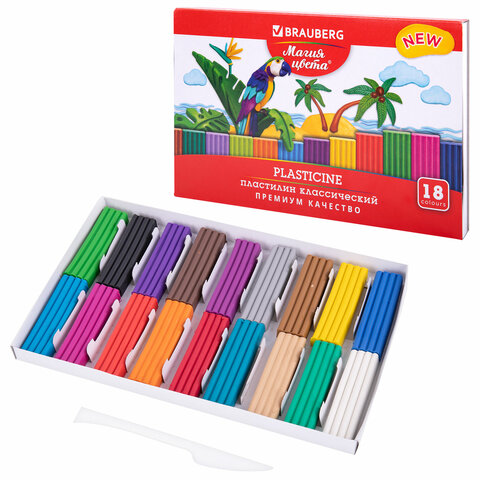 Пластилин классический BRAUBERG "МАГИЯ ЦВЕТА NEW", 18 цветов, 360 грамм, стек, ВЫСШЕЕ КАЧЕСТВО, 106427