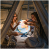 Карта глобуса максимально подробная, все надписи легко читаются. Глобус имеет подсветку, что позволяет комфортно использовать его в темное время суток. Подсветка от батареек абсолютно безопасна – можно использовать глобус в качестве ночника. Подсветка работает от двух батареек АА, в комплект с глобусом не входят. Использованные батарейки внутри сферы при необходимости легко заменить.