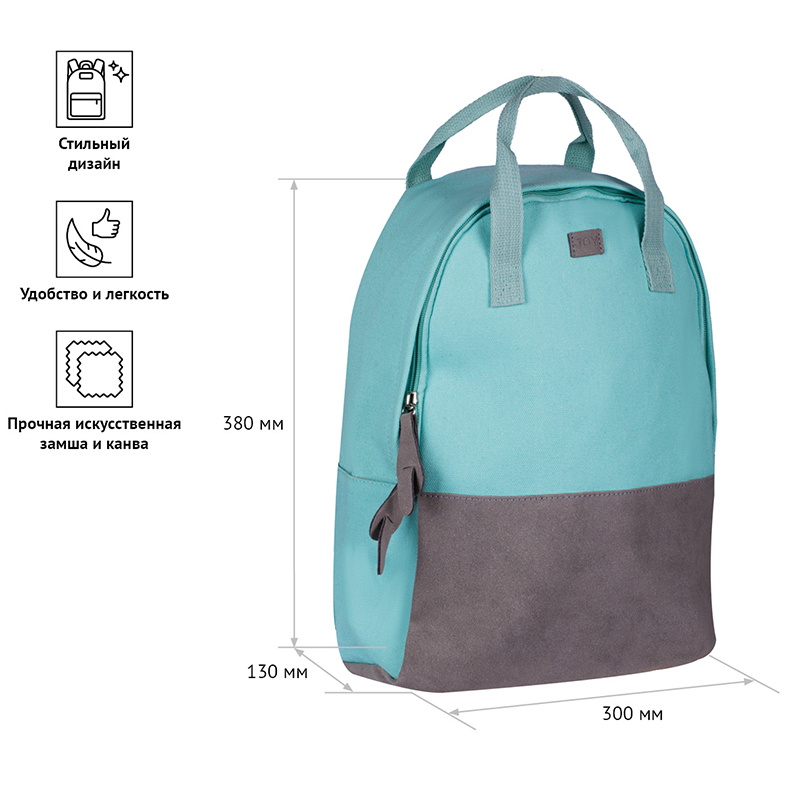Рюкзак ArtSpace Casual "Soft mint"38*30*13см, 1 отделение, 2 кармана, иск. замша/канва 312316