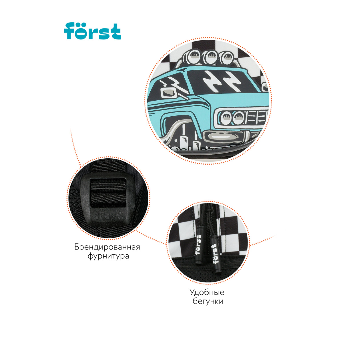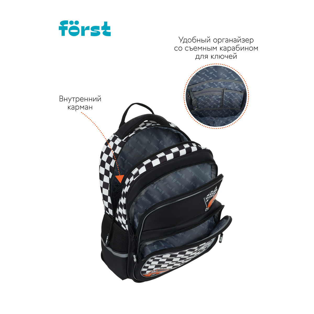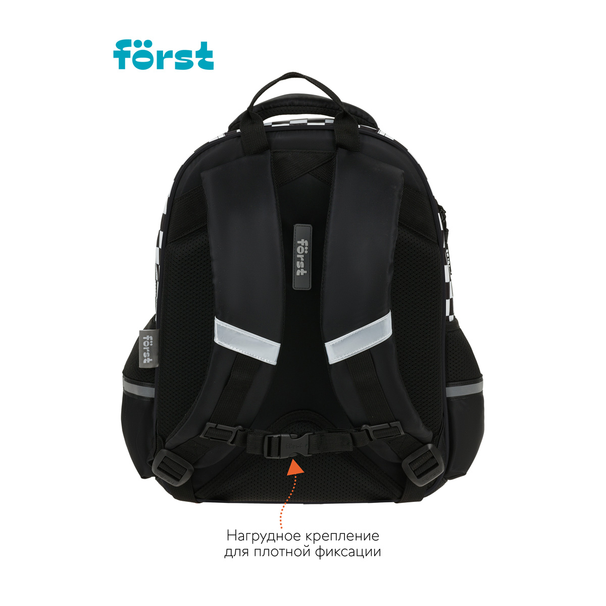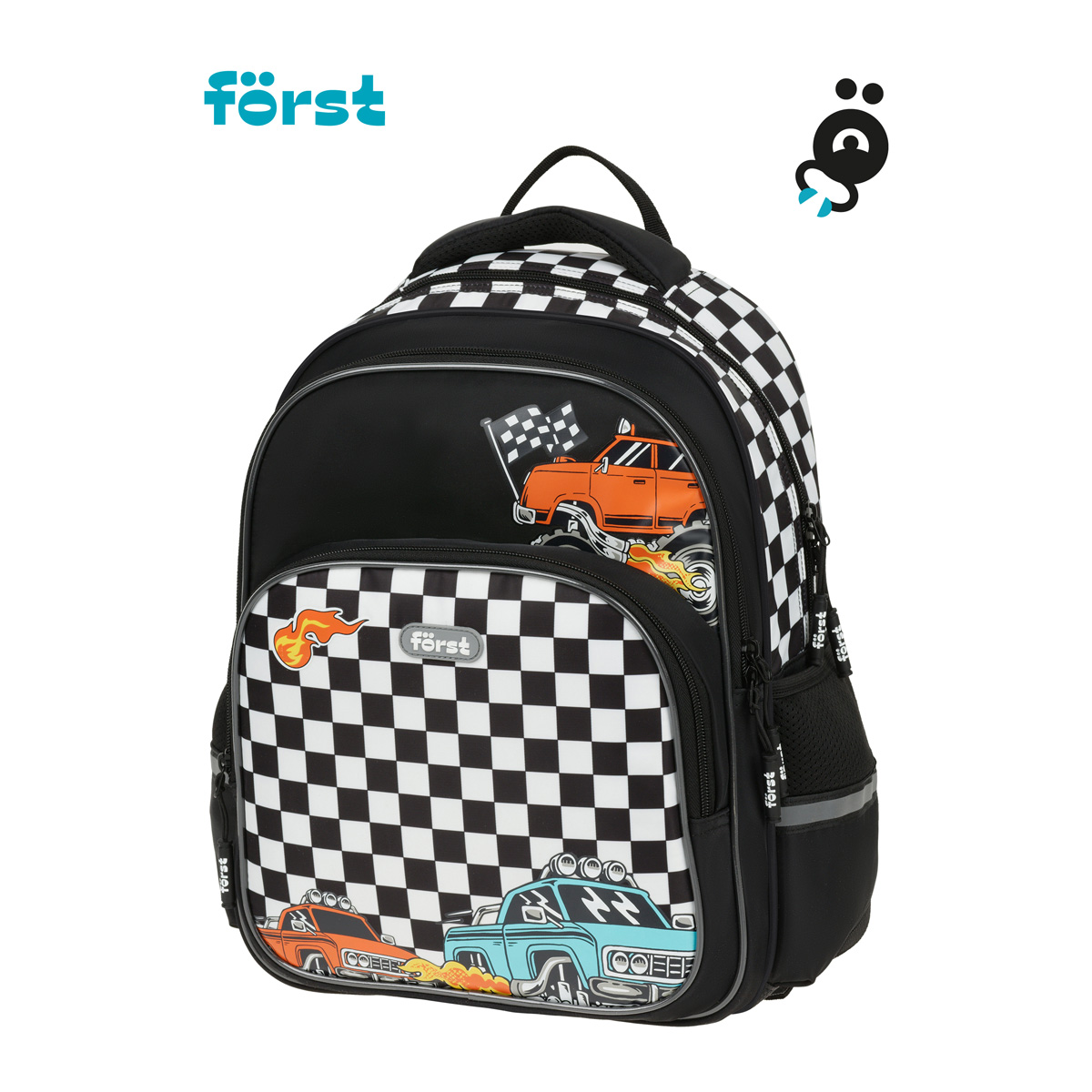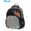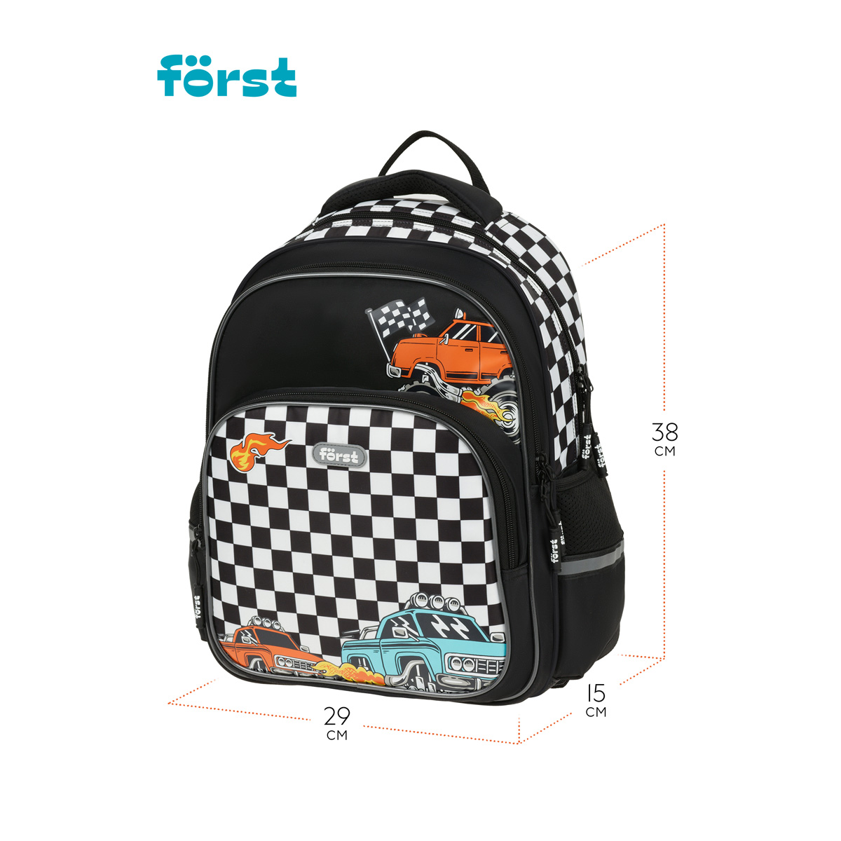 Рюкзак Först F-COMFY Racing размером 38*29*15 см и объёмом 16,5 литра с двумя отделениями, тремя карманами для детей младшего и среднего школьного возраста. Внутри — органайзер для канцтоваров и съемный карабин для ключей. Жесткая эргономичная спинка равномерно распределяет нагрузку без вреда для осанки. Спонжевые вставки, покрытые мягким вентиляционным материалом, обеспечивают комфорт, а также предотвращают запотевание спины ребенка. Дно рюкзака покрыто водонепроницаемым материалом для защиты содержимого от влаги и легкого ухода за изделием. Светоотражающие элементы — для безопасного передвижения ребенка в темное время суток. • Размер изделия: 38*29*15 см; • Вес: 690 г; • Объём: 16,5 литра; • Возрастная группа: для младших и средних классов.
