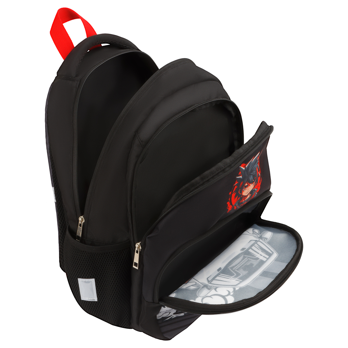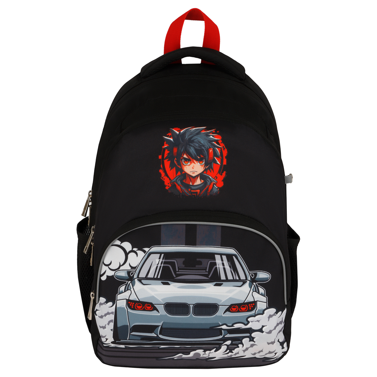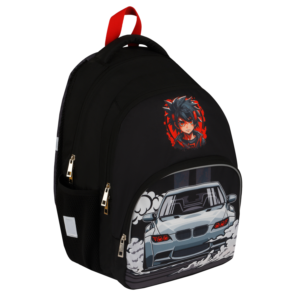 Рюкзак ArtSpace School "Race" подойдёт для учеников младших и средних классов. Рюкзак состоит из двух отделений, одного внешнего кармана на молнии и двух боковых сетчатых карманов для бутылок воды. Представлен в размере 40*28*18 см. Объём — 20,16 л. Сделан из прочного износостойкого полиэстера. Спинка и лямки уплотнены слоем спонжа толщиной 5 мм. Светоотражающие элементы помогут обезопасить школьника на дороге в условиях плохой видимости. Рюкзак оснащён плотной ручкой и петлёй для подвешивания на крючок. • Материал: полиэстер; • Количество отделений: 2; • Уплотнённая спинка; • Светоотражающие элементы.