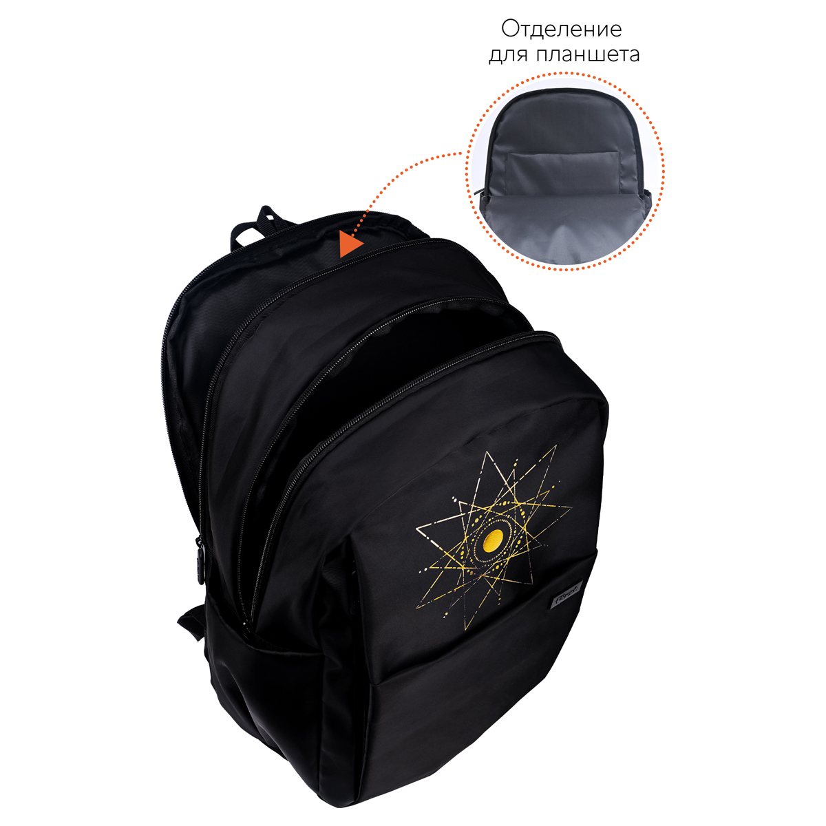 Рюкзак Först серии F-Spiritual Cosmic star — выбор активных молодых людей. В два больших отделения, три передних и два боковых кармана поместится всё необходимое. Размер — 40,5*29*15,5 см. Внутри есть мягкое отделение для планшета. Рюкзак сделан из высококачественного твила — износостойкого материала. Модель весит не более 470 граммов и вмещает до 18 литров. Он оснащён уплотнённой спинкой, S-образными лямками и ручкой-петлёй. Закрывается на пластиковую молнию. Благодаря минималистичному дизайну рюкзак органично сочетается с классическими, повседневными и спортивными образами. • Количество отделений: 2; • Вес: 470 г; • Материал: твил; • Уплотнённая спинка.