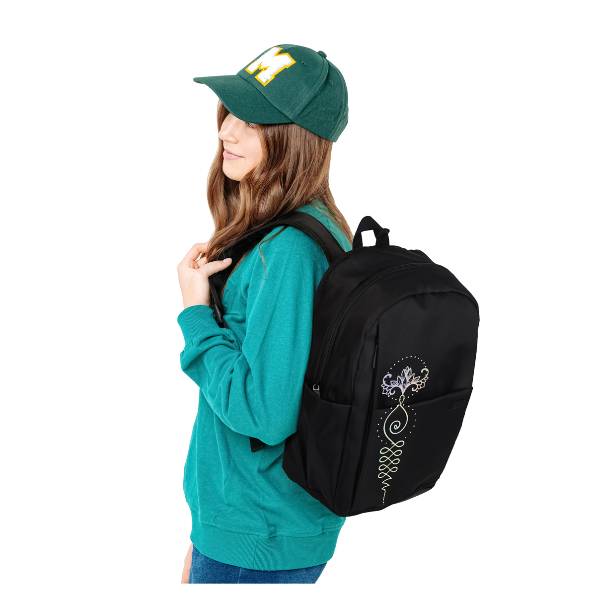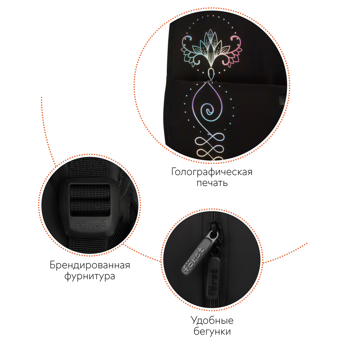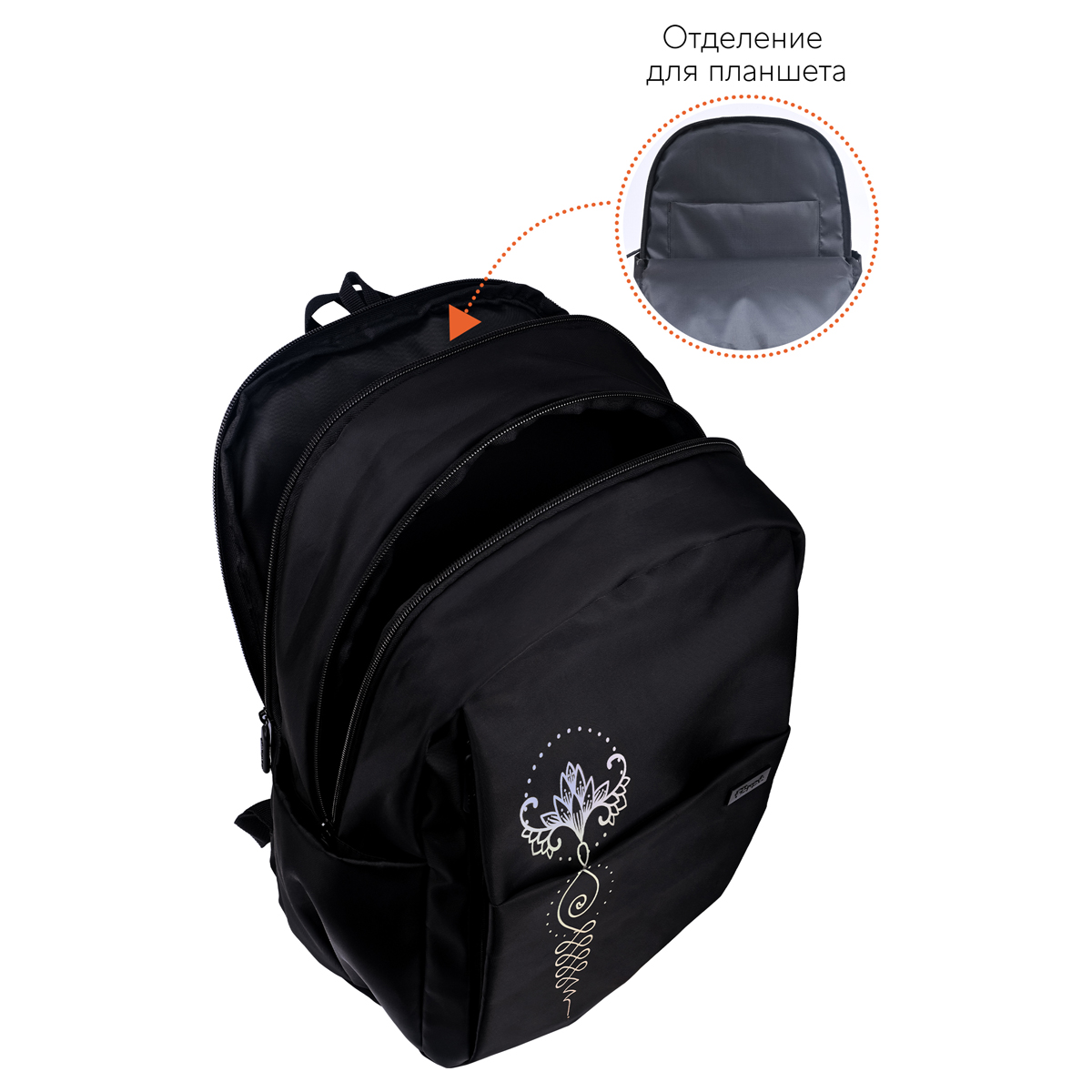 Рюкзак Först серии F-Spiritual Sacred symbols — выбор активных молодых людей. В два больших отделения, три передних и два боковых кармана поместится всё необходимое. Размер — 40,5*29*15,5 см. Внутри есть мягкое отделение для планшета. Рюкзак сделан из высококачественного твила — износостойкого материала. Модель весит не более 470 граммов и вмещает до 18 литров. Он оснащён уплотнённой спинкой, S-образными лямками и ручкой-петлёй. Закрывается на пластиковую молнию. Благодаря минималистичному дизайну рюкзак органично сочетается с классическими, повседневными и спортивными образами. • Количество отделений: 2; • Вес: 470 г; • Материал: твил; • Уплотнённая спинка.