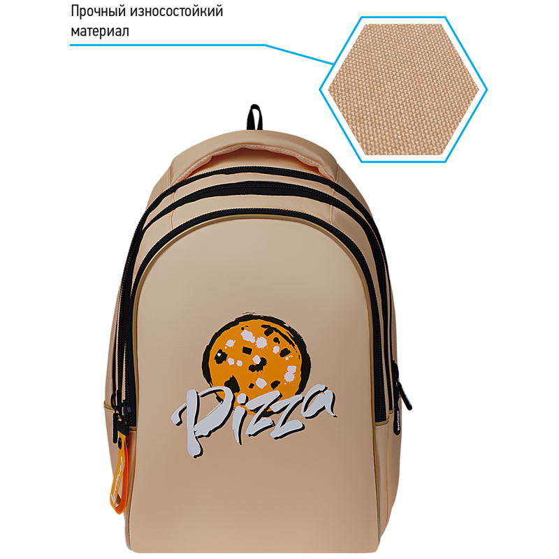 Эргономичный рюкзак школьный для девочки Berlingo серии in-Style Pizza размера 41*27*20 см предназначен для детей среднего и старшего школьного возраста. В модели предусмотрены 3 отделения, есть потайной карман на молнии на спинке. Внутри имеется органайзер, 2 открытых кармана, 1 карман на резинке и карман на молнии. Рюкзак выполнен из прочного нейлона, благодаря чему изделия обладают повышенной износостойкостью. Объём – 22 литра. Эргономичная вентилируемая спинка, широкие регулируемые лямки помогают равномерному распределению нагрузки на позвоночник, а усиленное дно, плотная ручка и петля для подвешивания делают рюкзак максимально удобным. Внутренняя подкладка плотная и устойчивая к разрывам. Световозвращающие элементы обеспечивают безопасность в темное время суток. Вес изделия 800 граммов. • Размер: 41*27*20 см; • Количество отделений: 3; • Объём: 22 л.; • Вид спинки: эргономичная; • Возрастная группа: для средних и старших классов.