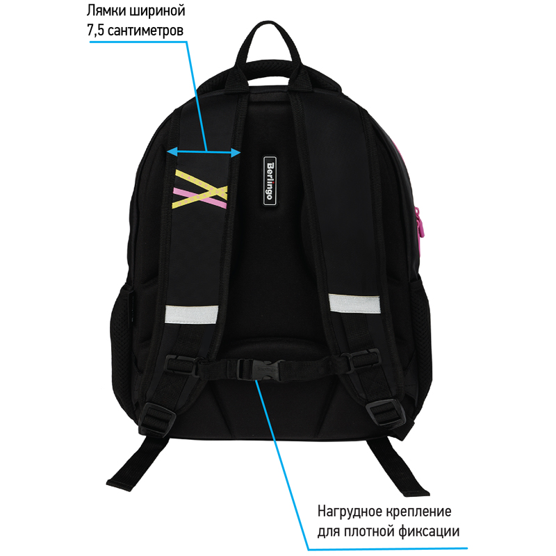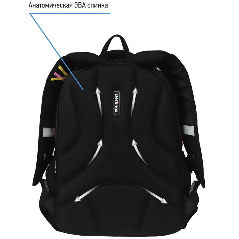 Формованная спинка из экологичного ЭВА-материала устойчива к деформации, создана с учетом анатомического строения спины ребенка, имеет вентиляционные каналы для свободной циркуляции воздуха. Плотные лямки с возможностью регулировки и нагрудный фиксатор позволяют равномерно распределить нагрузку на спину ребенка. Световозвращающие элементы помогают обеспечить безопасность ребенка в темное время суток. Вес изделия 630 граммов.