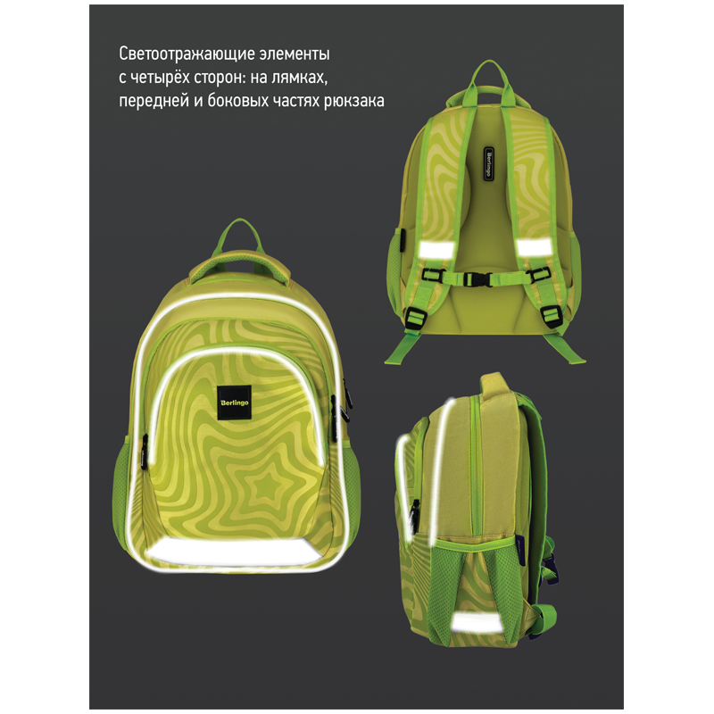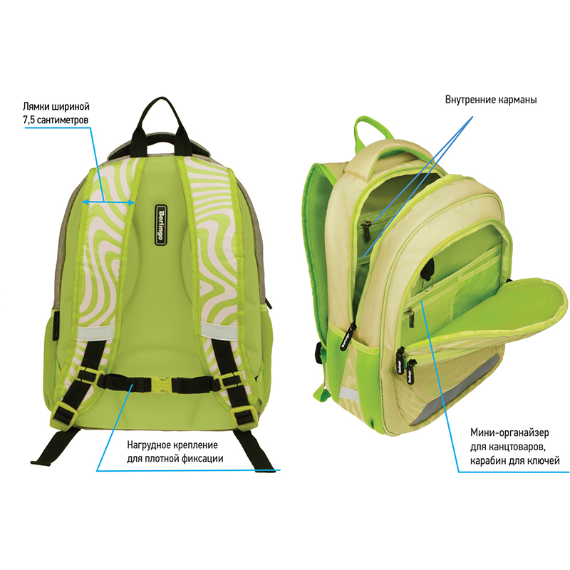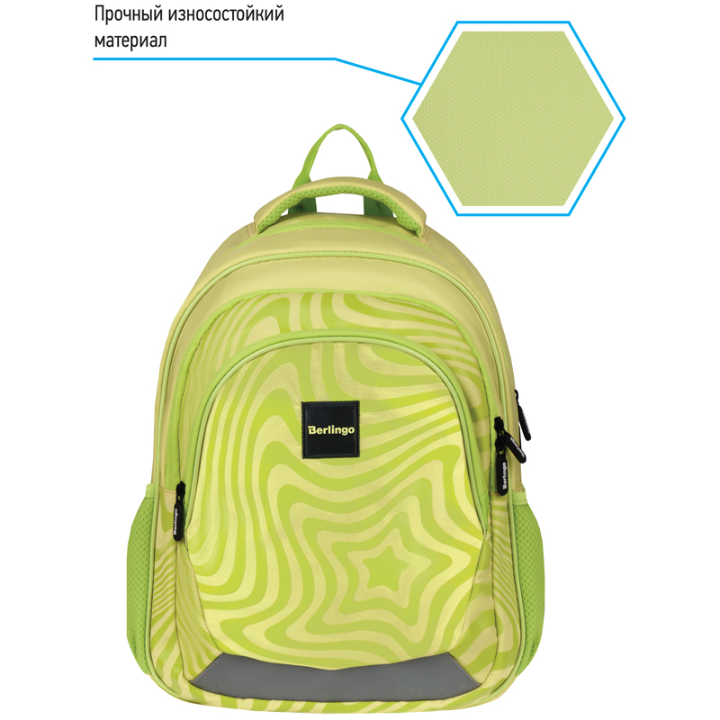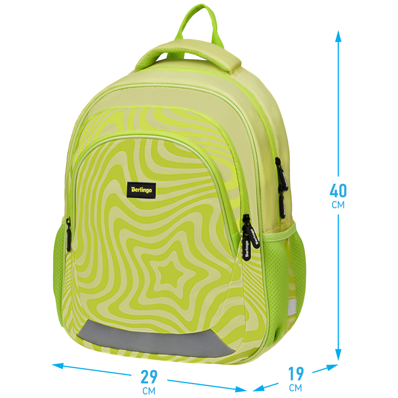 Эргономичный рюкзак школьный для девочки Berlingo серии Bliss Pastel star размера 40*29*19 см предназначен для детей младшего и среднего школьного возраста и является отличной альтернативой жестким ранцам. В модели объёмом 22 литра предусмотрены 3 отделения, 2 боковых кармана. Внутри имеется 1 карман на резинке, 2 кармана на молнии и 2 открытых кармана, а также мини-органайзер и съемный карабин для ключей. Формованная спинка из экологичного ЭВА-материала устойчива к деформации, создана с учетом анатомического строения спины ребенка, имеет вентиляционные каналы для свободной циркуляции воздуха. Плотные лямки с возможностью регулировки и нагрудный фиксатор позволяют равномерно распределить нагрузку на спину ребенка. Световозвращающие элементы помогают обеспечить безопасность ребенка в темное время суток. Вес изделия 630 граммов. • Размер: 40*29*19 см; • Количество отделений: 3; • Объём: 22 л.; • Вид спинки: анатомическая; • Возрастная группа: для младших и средних классов.