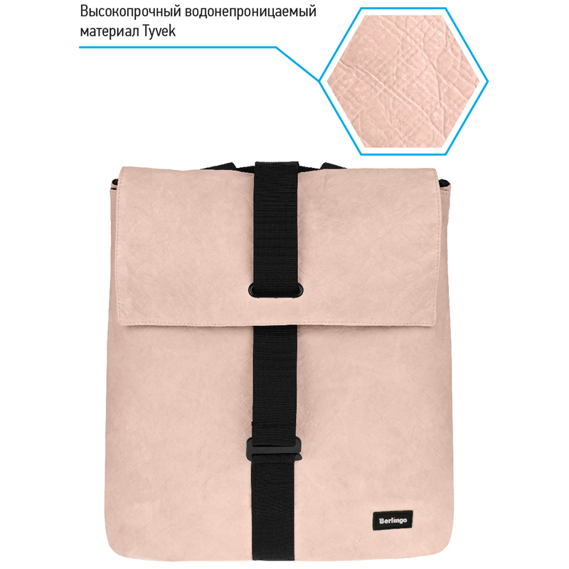 Ультрамодный молодежный школьный рюкзак для девочки Berlingo Trends Eco pink размера 36*28,5*13 см разработан в трендовом ЭКО стиле. У модели объёмом 13 литров 1 отделение, 1 боковой карман на молнии, оснащен уплотненной спинкой. Внутри имеется 2 маленьких кармашка и карман из сетки на молнии. Рюкзак закрывается на скобу. Вес 580 граммов. Рюкзак выполнен из высокопрочного водонепроницаемого материала Tyvek, внешне напоминающего дизайнерскую бумагу. Стильные пастельные цвета придают особый шарм данной модели. • Размер: 36*28,5*13 см; • Количество отделений: 1; • Объём: 13 л.; • Вид спинки: уплотнённая; • Возрастная группа: для средних классов.