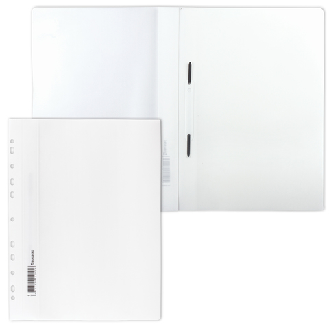Скоросшиватель пластиковый с перфорацией BRAUBERG, А4, 140/180 мкм, белый, 226585