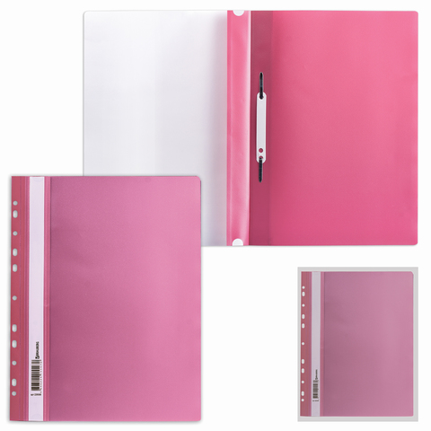 Скоросшиватель пластиковый с перфорацией BRAUBERG, А4, 140/180 мкм, розовый, 226588