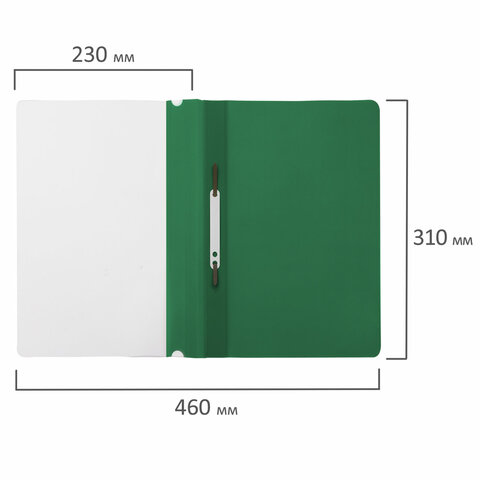 Фиксирует до 100 листов формата А4. Толщина пластика верхнего листа составляет 100 мкм, а нижнего - 120 мкм. Предельно простой механизм подшивки: металлические усики и пластиковая планка для надежной фиксации документов. Скоросшиватель изготовлен из качественного полипропилена. Прозрачный верхний лист позволяет определить содержимое, не открывая скоросшиватель, который к тому же снабжен сменным пластиковым корешком, что дает возможность структурировать информацию. Благодаря гладкой фактуре и яркому зеленому цвету обложки папка никогда не затеряется на полке.