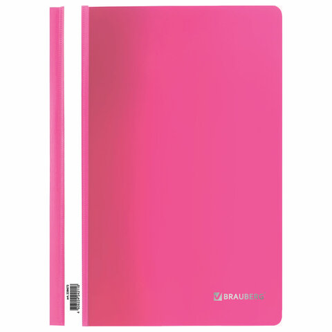 Скоросшиватель пластиковый BRAUBERG, А4, 130/180 мкм, розовый, 228672