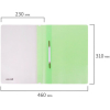 Фиксирует до 100 листов формата А4. Толщина пластика верхнего листа составляет 130 мкм, а нижнего - 180 мкм. Предельно простой механизм подшивки: металлические усики и пластиковая планка для надежной фиксации документов. Скоросшиватель изготовлен из качественного полипропилена. Прозрачный верхний лист позволяет определить содержимое, не открывая скоросшиватель, который к тому же снабжен сменным пластиковым корешком, что дает возможность структурировать информацию. Благодаря фактуре "песок" и заметному мятному цвету обложки папка никогда не затеряется на полке.