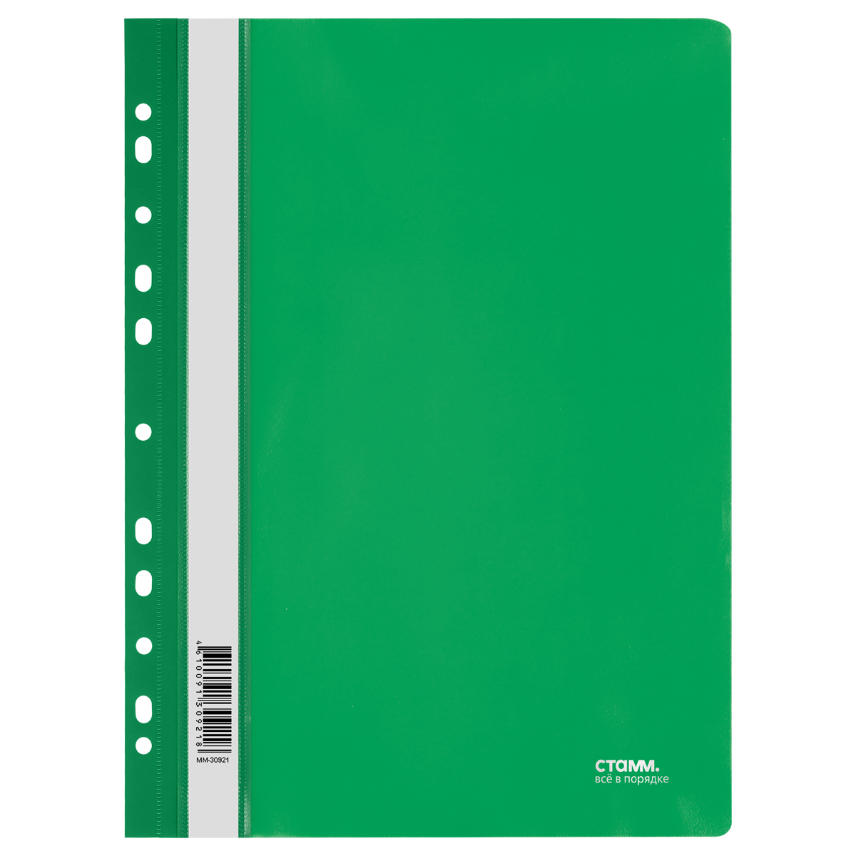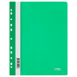 Папка-скоросшиватель «СТАММ» формата А4 предназначена для транспортировки, хранения и систематизации документов. Изделие изготовлено из качественного полипропилена толщиной 180 мкм. Изделие размером 240*310 мм имеет зеленый цвет с прозрачным верхним листом и снабжено универсальной перфорацией. Вместимость – до 100 листов. Папка защищает документы от пыли, влаги и прочих повреждений.